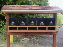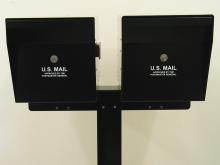 | Pinnacle Mailbox in custom housing | Mailboxes mounted on custom fixture |